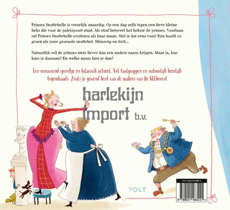 Onvergetelijk sprookje over een prinses vol met snotEr was eens een prinses die heel mooi was, maar moeite had met denken. Prinses Snottebelle is niet alleen dom, maar ook ontzettend gemeen. Op een dag beledigt ze een kleine heks, en die spreekt een vloek uit: de prinses zal voortaan zo zijn als haar naam. Vanaf dat moment heeft de vervloekte prinses een enorme kop gemaakt van snot. Haar vader, de koning, stelt voor dat ze snel trouwt met iemand zodat ze een nieuwe naam krijgt. Maar of prinses Snottebelle nu de oplossing vindt door met prins Leeghoofd te trouwen, is nog maar de vraag. Een verfrissend en geestig sprookje van Marc-Uwe Kling over oppervlakkigheid en de kracht om jezelf te veranderen, met al even grappige illustraties van Astrid Henn.