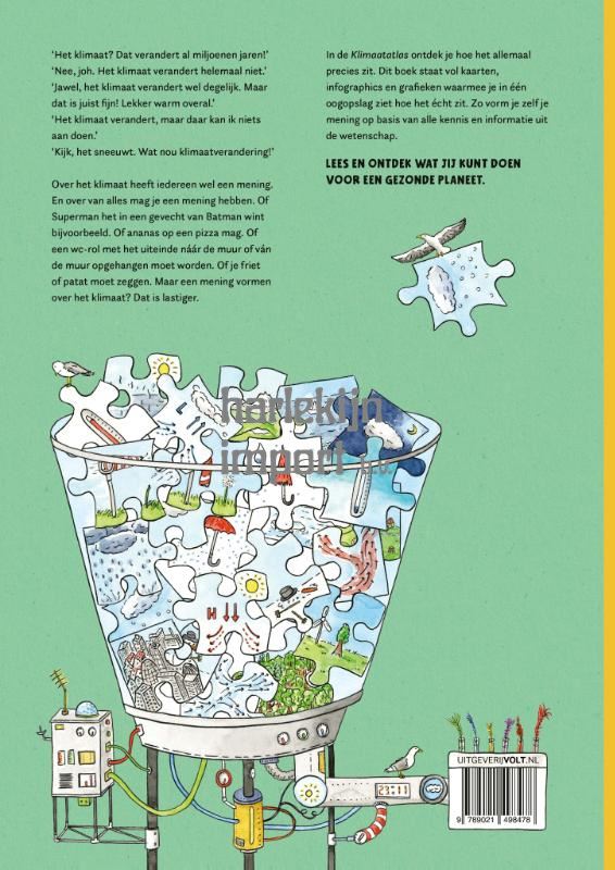 ‘Het klimaat? Dat verandert al miljoenen jaren!’ ‘Nee, joh. Het klimaat verandert helemaal niet.’ ‘Jawel, het klimaat verandert wel degelijk. Maar dat is juist fijn! Lekker warm overal.’ ‘Het klimaat verandert, maar daar kan ik niets aan doen.’ ‘Kijk, het sneeuwt. Wat nou klimaatverandering!’ Over het klimaat heeft iedereen wel een mening. En over van alles mag je een mening hebben. Of Superman het in een gevecht van Batman wint bijvoorbeeld. Of ananas op een pizza mag. Of een wc-rol met het uiteinde náár de muur of ván de muur opgehangen moet worden. Of je friet of patat moet zeggen. Maar een mening vormen over het klimaat? Dat is lastiger. Lees in de Klimaatatlas hoe het allemaal precies zit, want dit boek geeft informatie waarmee iedereen een verstandige en onderbouwde mening kan vormen.
