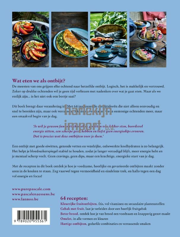 Moet je nu wel of niet ontbijten? Is het ontbijt de belangrijkste maaltijd van de dag? Voor Pascale Naessens is het simpel: zij vertrekt vanuit de lezer als persoon. Ga voor een heerlijk ontbijt als jij daarvan houdt, maar het is dan wel belangrijk om dat op een goede manier te doen. Een goed ontbijt betekent voor Pascale vooral dat het lekker en gezond is, want dat geeft energie voor de rest van de dag. Daarom zul je in dit boek geen recepten vinden met geraffineerde zetmeel of suiker. Haar ontbijten zadelen je niet op met bloedsuikerpieken en zorgen voor een constante energie, een verzadigd gevoel en een heldere geest. Een stabiele bloedsuikerspiegel aan het begin van de dag maakt het ook veel gemakkelijker om gedurende de dag gezonde keuzes te blijven maken. Dit boek inspireert je met 60 zoete en hartige recepten om absoluut lekker, gezellig én gezond te ontbijten.