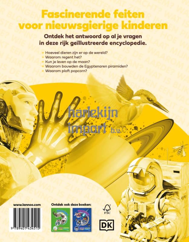 Ontdek het antwoord op al je vragen: waarvan zijn de ringen van Saturnus gemaakt? waarom warmt de aarde op? hoe kunnen vogels vliegen? wie vond het wiel uit? en kunnen computers denken? 'Geweldig boek! Mijn zoontje van 6 kijkt er bijna elke dag in. Hij kan nog niet lezen, maar door de duidelijke plaatjes en prachtige tekeningen snapt hij toch de uitleg. We lezen er ook veel samen in. Absoluut een aanrader (met name als je iedere dag veel waaromvragen moet beantwoorden).' - 5 sterren van een lezer