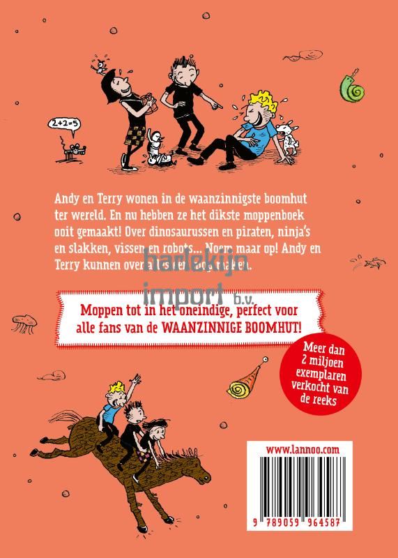 Andy en Terry wonen in de waanzinnigste boomhut ter wereld. En nu hebben ze het dikste moppenboek ooit gemaakt! Over dinosaurussen en piraten, ninja's en slakken, vissen en robots... Noem maar op! Andy en Terry kunnen over alles een mop maken. Moppen tot in het oneindige, perfect voor alle fans van de WAANZINNIGE BOOMHUT!