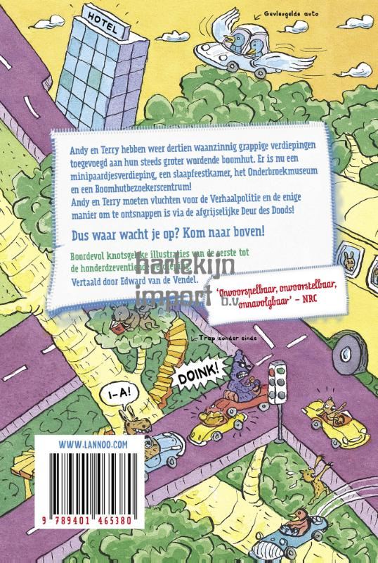 Andy en Terry hebben weer dertien waanzinnig grappig verdiepingen toegevoegd aan hun steeds maar groter wordende boomhut. Er is nu een minipaardjes-verdieping, een slaapfeestjeskamer, het Onderbroekmuseum en een Boomhut Informatie Centrum!
