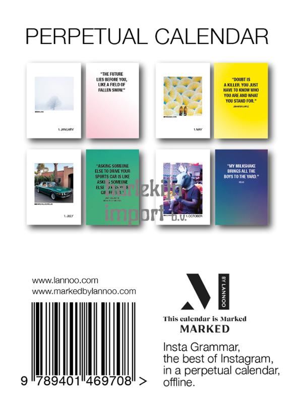 Als onderdeel van de trendy Insta Grammar-serie verzamelt deze eeuwigdurende kalender 365 dagen per jaar de beste Instagram-afbeeldingen.
