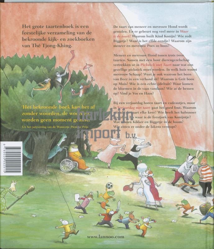 Drie prachtboeken van Thé Tjong-Khing in één band. Bind-up van Waar is de taart?, Picknick met taart en Verjaardag met taart. Wereldwijd zijn er van de drie titels al meer dan 100.000 ex. verkocht Waar is de taart? werd bekroond met de Woutertje Pieterse Prijs en een Zilveren Penseel en Picknick met taart werd genomineerd voor de Gouden Uil Jeugdliteratuurprijs.