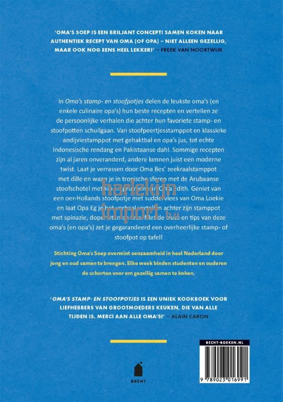 <p>In 'Oma's stamp- en stoofpotjes' delen de leukste oma's en opa's hun persoonlijke verhalen en authentieke recepten. Waar in 'Oma's soep' soepen de show stelen, spelen in 'Oma's stamp- en stoofpotjes' oer-Hollandse stamppotten en stoofpotten de hoofdrol. Wie is er nou niet dol op de stamppot van oma of opa? <br><br>'Oma's stamp- en stoofpotjes' staat boordevol klassieke gerechten als boerenkool met (vega)worst of andijviestamppot met gehaktbal en opa's jus, maar ook met heerlijke gerechten als Indonesische rendang en Pakistaanse dahl. Elke stamppot en stoofpot zit boordevol smaak en is perfect voor een koude winterdag. 'Oma's stamp- en stoofpotjes' is daarom het perfecte kookboek voor iedereen die gek is op stamppot en stoofpot. <br><br>Van elk verkocht boek gaat er één euro naar stichting Oma's Soep. Stichting Oma's Soep brengt jong en oud in heel Nederland samen om zo eenzaamheid te overwinnen.</p>