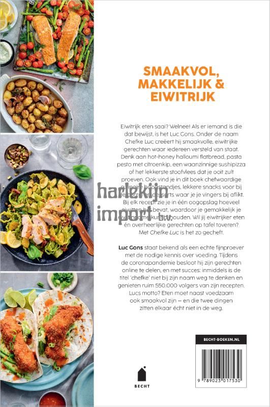 Met de eiwitrijke en gezonde maaltijden van Chefke Luc eet je met gemak gezond(er) zónder in te leveren op smaak. Wil je genieten van overheerlijke gerechten én genoeg eiwitten binnenkrijgen om je macro’s te halen? Met het kookboek van Chefke Luc wordt dat een fluitje van een cent. Luc Gons – beter bekend als Chefke Luc – is dé expert als het gaat om supersmaakvolle eiwitrijke gerechten. Denk aan knapperige tuna melt taco’s of een frisse pokébowl met zalm. Wil je écht uitpakken? Maak dan de allerlekkerste mini beef wellingtons of coquilles met pancetta, asperges en aardpeercrème. Bij elk gerecht staat hoeveel kcal en eiwitten het bevat. Chefke Luc is hét kookboek voor iedereen die gezonder en fitter wil worden zonder in te leveren op smaak.