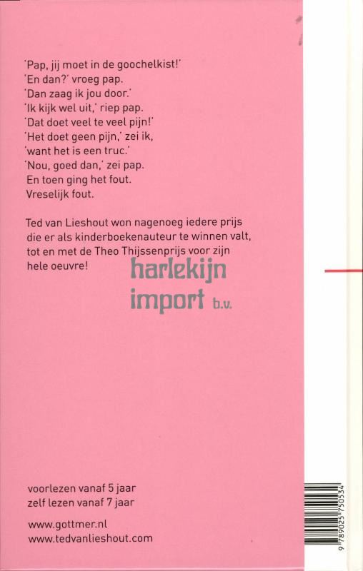 Ted van Lieshout won nagenoeg iedere prijs die er als kinderboekenauteur te winnen valt, tot en met de Theo Thijssenprijs aan toe. In Ik ben een goochelaar voert hij dezelfde hoofdpersonen – een zoon en een vader – op als in Ik ben een held, het eerste deel uit de Ted van Lieshout-bibliotheek. Sylvia Weve maakte ook voor Ik ben een goochelaar de illustraties en weet als geen ander de humor van Ted van Lieshout te verbeelden. Het resultaat is een geestig, maar ook spannend boek voor beginnende lezers.