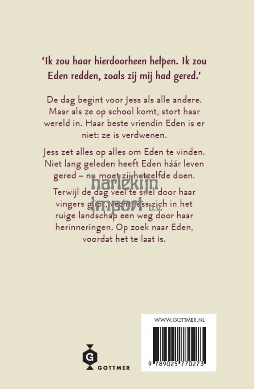 De dag van Eden is een meeslepende en spannende literaire young adultthriller met thema’s als rouwverwerking, eigenheid en zinloos geweld. Als Eden op een dag niet op school aankomt, zet haar beste vriendin Jess alles op alles om haar te vinden. Niet lang geleden heeft Eden háár leven gered – nu moet zij hetzelfde doen. Jess vecht zich een weg door haar herinneringen, wanhopig op zoek naar een aanwijzing die haar naar Eden kan leiden. Maar door terug te blikken komen zorgvuldig begraven geheimen weer aan het licht… Genomineerd voor Beste Boek voor Jongeren 2019.