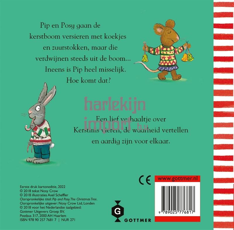 Pip en Posy hebben een kerstboom opgehaald. Nu kan het versieren beginnen! Ze bakken koekjes om in de boom te hangen, en er komen ook nog zuurstokken en chocoladeklokjes bij. Plots is de boom helemaal leeg. Pip heeft hem stiekem leeggesnoept, en nu is hij behoorlijk misselijk. Zoals altijd lossen de twee vrienden hun kleine probleem samen op. Eerst halen ze een frisse neus in de sneeuw, en daarna knutselen ze mooie, niet eetbare sterren en slingers voor in hun boom.