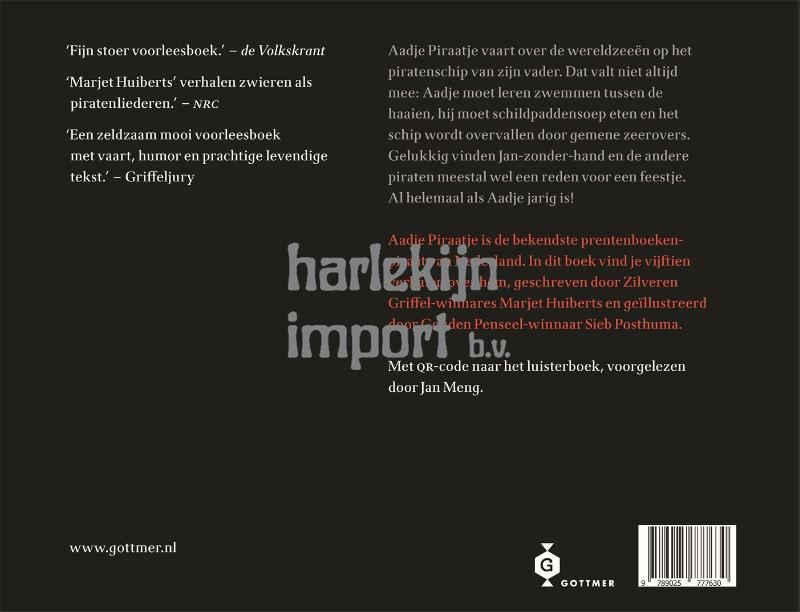 Marjet Huiberts en Sieb Posthuma creƫerden in 2009 een figuurtje dat onmiddellijk duizenden harten veroverde: Aadje Piraatje. Sindsdien zijn de prentenboeken van Aadje Piraatje niet meer weg te denken uit kinderboekenland. De dikke bundel waarin alle geweldige verhalen zijn opgenomen, 'Aadje Piraatje - Een vat vol verhalen', blijft een van de mooiste cadeaus om een kind te geven. Via de luisterverhalen achter de QR-code in het boek - voorgelezen door meesterverteller Jan Meng - kunnen kinderen nu dubbel genieten van Aadje Piraatje.