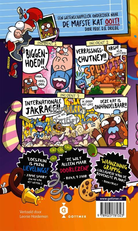 <p>'Loesjkin is de mafste kat ter wereld' is het eerste deel in de compleet gestoorde nieuwe reeks kinderboeken over Loesjkin van Jamie Smart, de Britse stripheld achter de megahit Bunnie vs Monkie.<br><br>Maak kennis met Loesjkin, een schattige blauwe kat die in alles het tegenovergestelde is van normaal. Zijn baasje droomt van een rustig gezinsleven met een lief huisdier... maar dan blijkt Loesjkin een explosie van chaos, kattenkwaad en totale waanzin!<br><br>Eén moment lijkt alles kalm, maar het volgende moment staat het huis onder water, is de woonkamer bedolven onder slagroom en opent zich een portaal naar een andere dimensie met bijen. Overal bijen! Eén ding is zeker: het wordt heel, héél grappig.<br><br>'Loesjkin is de mafste kat ter wereld' is deel 1 in een nieuwe graphic novel-serie vol humor, actie en absurdisme, perfect voor kinderen vanaf 7 jaar die houden van knotsgekke stripverhalen. Jamie Smart, bekroond met o.a. Best Illustrated Children's Book en Illustrator of the Year 2024, is de meester van humor en chaos. Zijn nieuwe serie Loesjkin is nóg maffer dan Bunnie vs Monkie en minstens zo verslavend.</p>