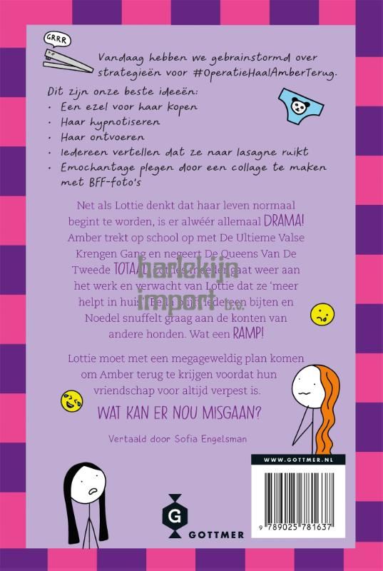 'De ultieme valse krengen vs Lottie' is deel 8 in de grappige serie tienerboeken voor meiden vanaf 10 jaar, Het leven van Lottie. Net als Lottie denkt dat het leven misschien een beetje normaal wordt, gaat alles weer mis! Amber hangt ineens rond met de allergemeenste meidengroep op school en doet alsof Lottie en haar vriendinnen niet bestaan. Lotties moeder is weer aan het werk gegaan en vindt dat Lottie meer in het huishouden mag helpen. Bella bijt nog steeds alles wat beweegt, en Toby is irritanter dan ooit (skibidi toilet rizz? Nee? Niemand?). Lottie moet een slim plan bedenken om Amber terug te winnen. Wat kan er misgaan? Antwoord: ALLES. Deel 8 in de Lottie-serie, 'De ultieme valse krengen vs Lottie', zit net als de eerdere delen weer vol grappige, herkenbare situaties, puberproblemen en ongemakkelijke momenten waar elke tiener zich in kan vinden. Ook in deze serie verschenen: 'Het extreem gĂȘnante leven van Lottie' (1), 'Het rampzalige sociale leven van Lottie' (2), 'Het verwarrende liefdesleven van Lottie' (3), 'Het dramatische schoolkamp van Lottie' (4), 'De krankzinnige kerst van Lottie' (5), 'Het bizarre BFF-gedoe van Lottie' (6) en 'De compleet onmisbare survivalgids van Lottie' (7). Auteur Katie Kirby is een gevestigde naam in het genre van humoristische kinderboeken, dagboekboeken en meidenboeken. Met haar humoristische stijl en stripachtige doodles laat ze op een luchtige manier zien hoe het is om op te groeien als puber. De boeken over Lottie zijn perfect voor kinderen vanaf 10 jaar en ideaal om leesplezier te stimuleren. Ook zijn ze een aanrader voor ouders en docenten die op zoek zijn naar een leuk, makkelijk te lezen tienerboek voor school of thuis.