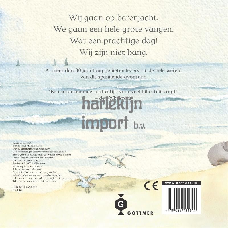 Een nieuwe editie met schuifjes en draaischijf van de klassieker 'Wij gaan op berenjacht'. In dit voorleesverhaal gaat een familie op jacht naar een heel grote beer om te vangen. Niets is ze te gek en ze zijn nergens bang voor. Kolkende rivieren, sneeuwstormen of donkere bossen: ze gaan er dwars doorheen. Maar dan komen ze een echte beer tegen... Het prentenboek 'Wij gaan op berenjacht' van Michael Rosen wordt al meer dan 35 jaar met veel plezier voorgelezen in Nederland en Belgiƫ. Nu is dit tijdloze verhaal er ook als interactief kartonboek, speciaal voor de kleine berenliefhebber of dappere jager. Met de schuifjes, wieltjes en flapjes op elke pagina kunnen kinderen zelf meedoen met de spannende berenjacht. De onderdelen zijn extra stevig en kunnen wel tegen een stootje. Perfect voor kleine vingertjes! Deze nieuwe editie van 'Wij gaan op berenjacht' is leuk voor kinderen vanaf 2 jaar.