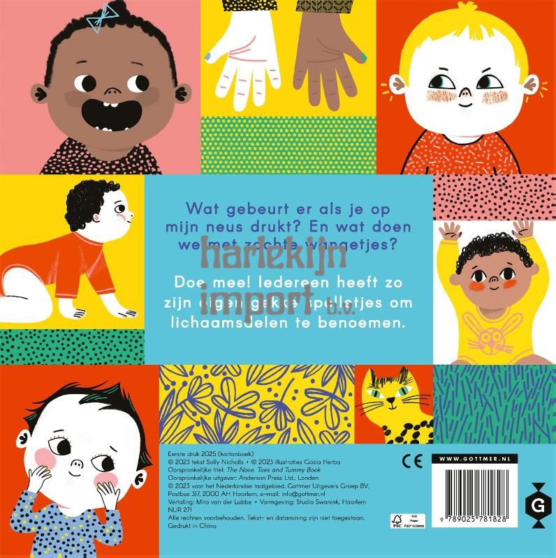 <p>'Het neus-, tenen- en buikboek' is een interactief en spetterend prentenboek van stevig karton dat uitnodigt tot voorlezen, na-apen en meespelen. Ouders hebben vaak hun eigen unieke spelletjes, liedjes en grapjes om kinderen wegwijs te maken in hun eigen lijf: op buikjes blazen, met teentjes wiebelen, in vingertjes bijten. Dit uitbundige boek vol diverse en inclusieve gezinnen is een ode aan deze hechte band en persoonlijke interacties tussen jonge kinderen en hun ouders of verzorgers. En het brengt ze misschien ook op nieuwe ideeën!<br><br><br>'Het neus-, tenen- en buikboek' is een vrolijk, speels boek om voor te lezen, vol geluiden en taalspelletjes. De moderne illustraties beelden gezinnen af in alle samenstellingen en de kleuren spatten van de pagina's. Dit prentenboek is leuk voor kinderen vanaf 3 jaar.</p>