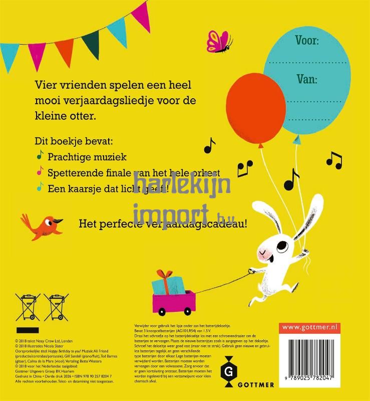 Het leukste boek voor een verjaardag, met geluiden van een heel orkest! 'Fijne verjaardag voor jou!' is een geluidenboek om met het orkest mee te zingen en te spelen, met verschillende instrumenten. Aan het eind van het boek vind je zelfs een lichtgevend kaarsje om uit te blazen. Alle vriendjes van de kleine otter hebben hun muziekinstrumenten meegenomen voor zijn verrassingsfeestje. Druk op de muziekknoppen en luister naar de fluit, de gitaar, de viool en de piano en zing tot slot mee met de hele band. Het boek is met alle muzikale geluiden en het oplichtende kaarsje op de verjaardagstaart een geweldig verjaardagscadeau voor kinderen vanaf 3 jaar.