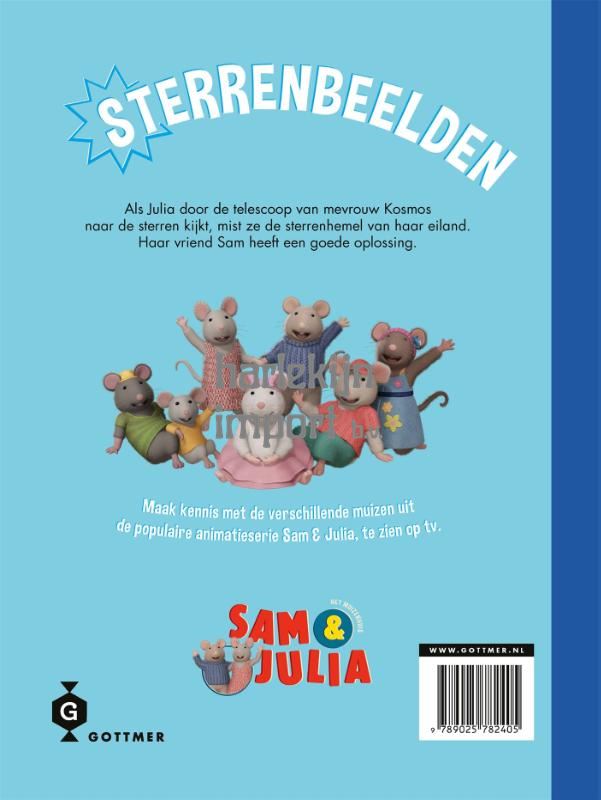 'Sterrenbeelden' is een handzaam prentenboek met een voorleesverhaaltje voor kleuters, gebaseerd op de populaire tv-serie Het Muizenhuis, met de avonturen van Sam en Julia. In dit nieuwe avontuur kan Julia niet slapen omdat ze voetstapjes op het dak hoort. Het is mevrouw Kosmos die de naar de sterren tuurt. Julia mag ook even door de telescoop kijken en mist de sterrenhemel van haar eigen eiland. 'Sterrenbeelden' is een stevig voorleesboekje voor kleuters, met herkenbare situaties, lieve karakters en kleurrijke illustraties uit de wereld van Het Muizenhuis van Karina Schaapman. Perfect voor jonge fans van de animatieserie op tv en voor kinderen vanaf 4 jaar die houden van vrolijke avonturen met een vleugje ondeugendheid.