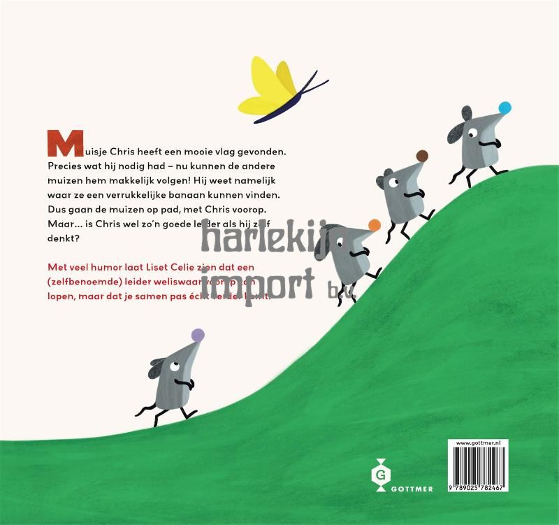 <p>'Volg mij!' is een humoristisch prentenboek over leiderschap, samenwerken en vriendschap, geschreven en geïllustreerd door Liset Celie. Geschikt voor kinderen vanaf 3 jaar.<br><br>Muisje Chris ziet zichzelf als een echte leider. Wanneer andere muizen worstelen om een aardbei te plukken, weet hij het zeker: ze moeten hem volgen. Hij kent een plek waar een heerlijke banaan te vinden is. Vol vertrouwen gaat hij voorop, met de rest achter zich aan. Maar onderweg raken de muizen steeds meer gehavend. Als Chris doodleuk in een bootje stapt en de anderen opdraagt achter hem aan te zwemmen, is voor hen de maat vol. Ze laten hem wegdrijven.<br><br>Daar dobbert hij dan, alleen op het water. Chris ontdekt dat je aan alleen een leider niet genoeg hebt en dat je samen veel sterker staat.<br><br>Met vaart, humor en expressieve illustraties vertelt Liset Celie een avontuurlijk verhaal met een duidelijke maar luchtige boodschap over samenwerken, luisteren naar elkaar en wat écht goed leiderschap betekent. Dit is het eerste prentenboek dat zij zowel schreef als illustreerde. Eerder maakte ze onder meer 'Het verlegen vogeltje'.<br><br>'Volg mij!' is een bijzonder voorleesboek voor peuters en kleuters en een waardevolle aanvulling op thema's als groepsdynamiek en sociale vaardigheden.</p>