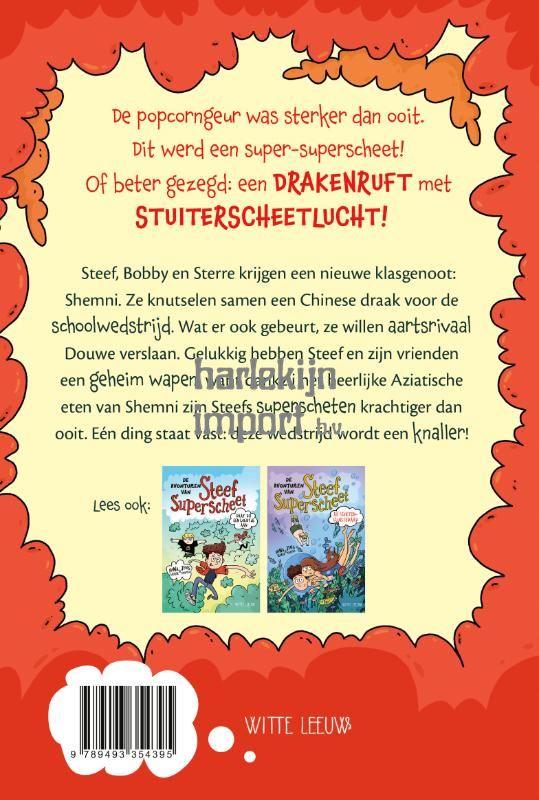 Steefs superscheten waren nog nooit zo sterk! Steef, Bobby en Sterre krijgen een nieuwe klasgenoot: Xia. Ze knutselen samen een Chinese draak voor de schoolwedstrijd. Dankzij het heerlijke Aziatische eten van Xia zijn Steefs superscheten krachtiger dan ooit! Ze wekken zelfs de draak tot leven, wat handig is om hun aartsrivaal Douwe een lesje te leren… Zolang de school maar niet in de fik vliegt! Supergrappig verhaal boordevol humor en heel veel (super)scheten.