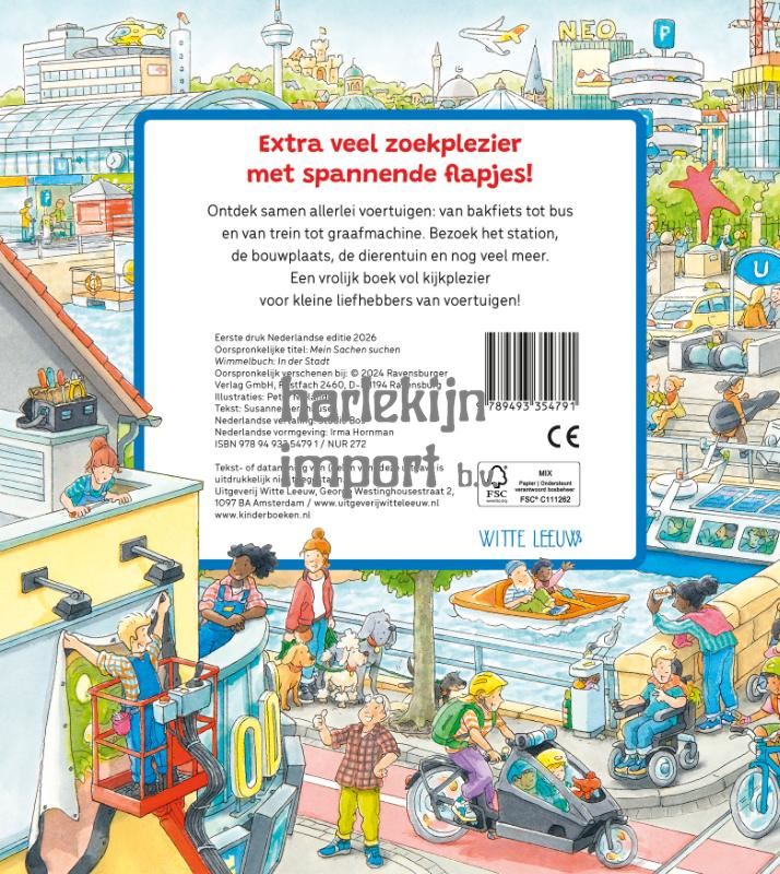 Ontdek in Voertuigen in de stad - Het leukste kijk- en zoekboek van Susanne Gernhäuser welke voertuigen in de stad te vinden zijn. De vele uitdagende flapjestocht maken dit boek extra leuk! Ga mee naar de stad en ontdek welke voertuigen daar allemaal te vinden zijn. Ga je op de bakfiets, of toch liever met de bus of de auto? Bezoek het treinstation, rij over een brug over de rivier en neem een kijkje op de bouwplaats. Er is ook een dierentuin en een grote snuffelmarkt. In de stad is van alles te zien! Het leukste boek voor kleine liefhebbers van heel veel soorten voertuigen!