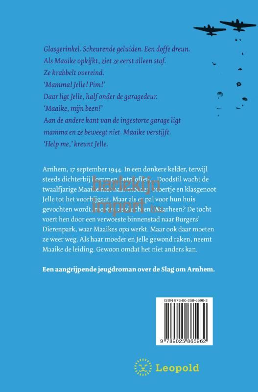 rnhem, 17 september 1944. In een donkere kelder, terwijl steeds dichterbij bommen ontploffen… Doodstil wacht de twaalfjarige Maaike met haar moeder, broertje en klasgenoot Jelle tot het voorbijgaat. Maar als er pal voor hun huis gevochten wordt, moeten ze vluchten. Waarheen? De tocht voert hen door een verwoeste binnenstad naar Burgers’ Dierenpark, waar Maaikes opa werkt. Maar ook daar moeten ze weer weg. Als haar moeder en Jelle gewond raken, neemt Maaike de leiding. Gewoon omdat het niet anders kan.