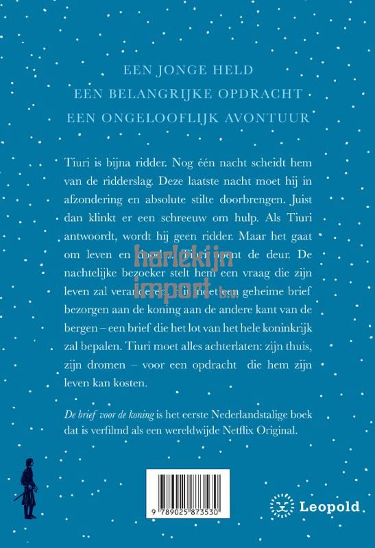 Tiuri is bijna ridder. Nog één nacht scheidt hem van de ridderslag. Deze laatste nacht moet hij in afzondering en absolute stilte doorbrengen. Juist dan klinkt er een schreeuw om hulp. Als Tiuri antwoordt, wordt hij geen ridder. Maar het gaat om leven en dood… Tiuri opent de deur. De nachtelijke bezoeker stelt hem een vraag die zijn leven zal veranderen. Hij moet een geheime brief bezorgen aan de koning aan de andere kant van de bergen – een brief die het lot van het hele koninkrijk zal bepalen. Tiuri moet alles achterlaten: zijn thuis, zijn dromen – voor een opdracht die hem zijn leven kan kosten.