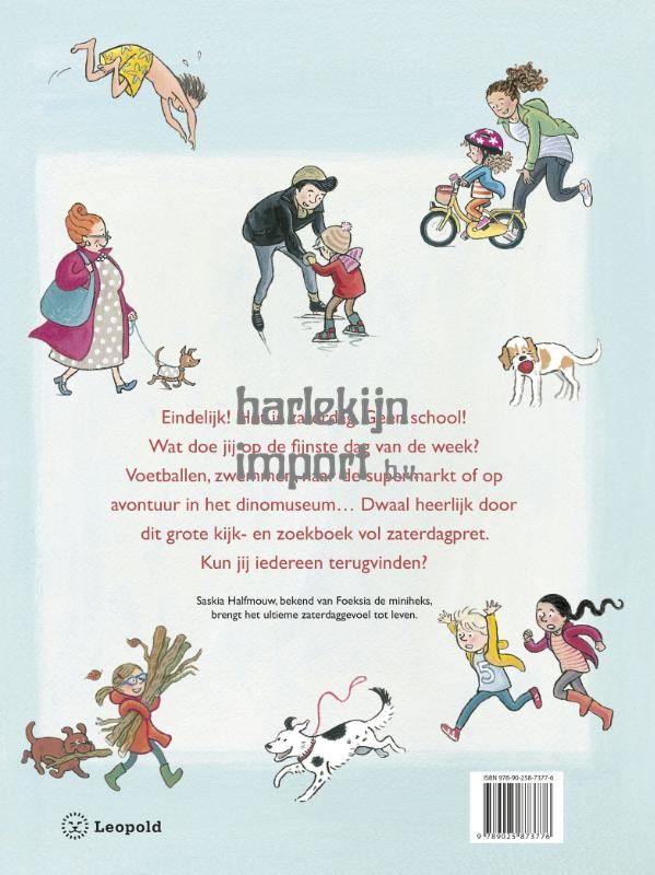 Groot kijk- en zoekboek over alle mogelijke activiteiten en belevenissen op de fijnste dag van de week! Van Saskia Halfmouw, onder andere bekend van haar tekeningen voor de "Geheim'-reeks en Paul van Loons boeken over Foeksia de miniheks.