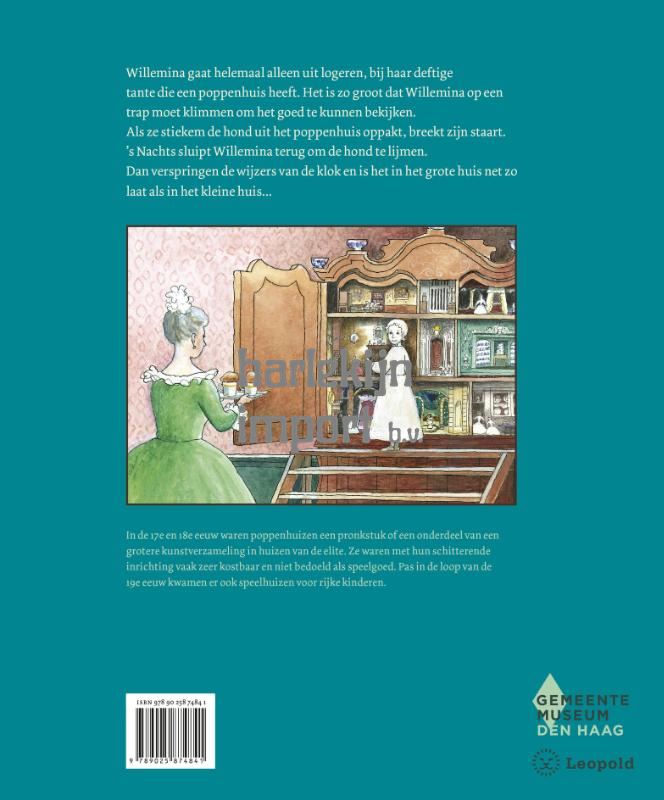 Willemina gaat helemaal alleen uit logeren, bij haar deftige tante die een poppenhuis heeft. Het is zo groot dat Willemina op een trap moet klimmen om het goed te kunnen bekijken.