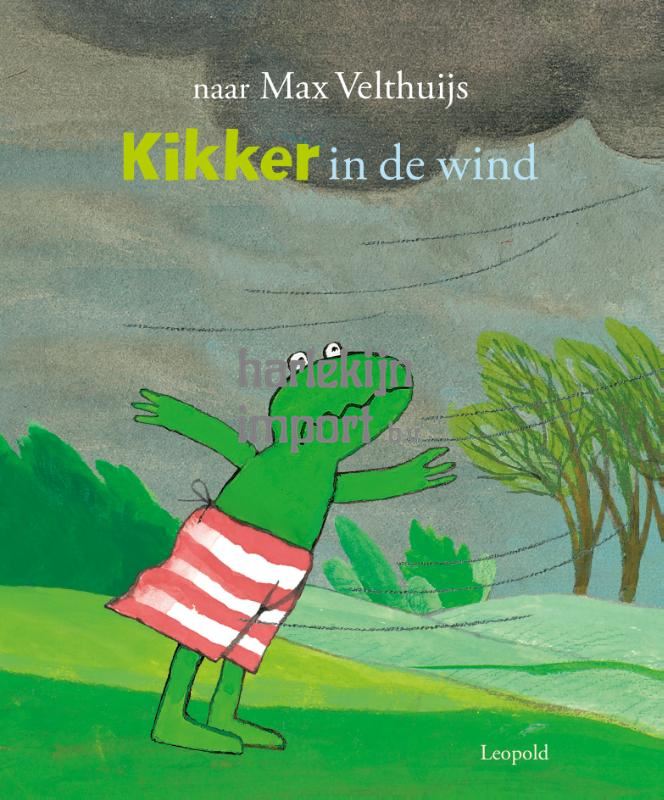 In Kikker in de wind, een Kikker-prentenboek naar Max Velthuijs, hoort kikker een vreemd geluid. Het was alsof duizend vogels floten… Kikker opent zijn deur. Het stormt als nooit tevoren en de wind blaast Kikker terug naar binnen. Dan klinkt een oorverdovend lawaai en schudt zijn huis. De boom is omgevallen en hij krijgt de voordeur niet meer open. Gelukkig komen zijn vriendjes hem bevrijden!