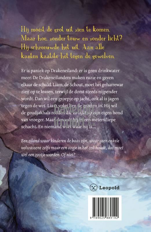 Paniek op Drakeneiland van Lydia Rood is de nieuwste toevoeging aan de populaire Drakeneiland-serie. Er is paniek op Drakeneiland: er is geen drinkwater meer. De Drakeneilanders maken ruzieen geven elkaar de schuld. Liam, de Schout, moet het geharrewar zien op te lossen, terwijl de dorst steeds nijpender wordt. Dan wil een groepje op jacht, ook al is jagen tegen de wet. Liam volgt een jakhals de grotten in. Hij wil de goudjakhals redden die zo lijkt op zijn eigen hond van vroeger. Maar dan valt hij in een metersdiepe schacht. En niemand weet waar hij is... Een eiland waar kinderen de baas zijn, waar geen enkele volwassene zelfs maar een oogje in het zeil houdt, dat moet wel een zootje worden. Of niet?