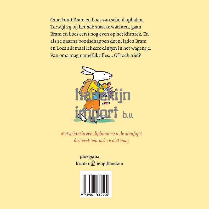 Bram en Loes gaan samen met oma boodschappen doen. Terwijl zij op zoek gaat naar appels en wortels, laden Bram en Loes allemaal lekkere dingen in. Snoepjes, koekjes, toetjes... Van oma mag namelijk alles - of toch niet?
