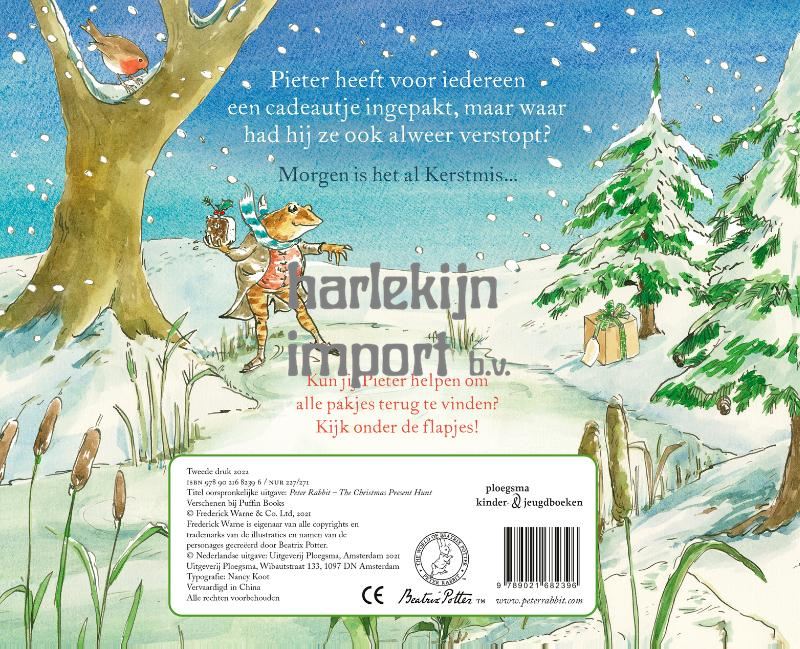 Pieter Konijn heeft de cadeautjes voor zijn moeder en zusjes ergens verstopt, maar waar ook alweer? Morgen is het al Kerstmis... Samen met de lezer gaat hij op zoek in het bos. Maar door de sneeuw ziet alles er ineens heel anders uit. Kijk onder de flapjes en zoek mee!