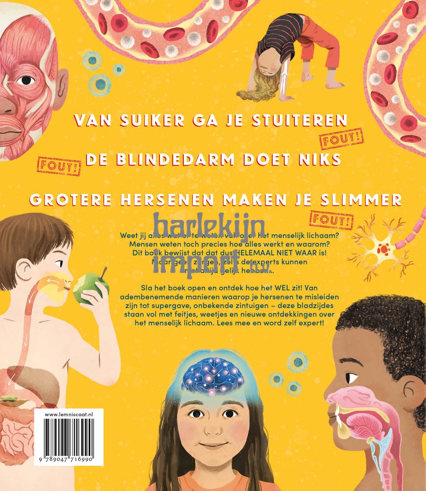 <p>Weet jij alles wat er te weten valt over je lichaam? Dat zou je wel denken, toch… Vergeet het maar! Dit boek bewijst dat alles wat je weet FOUT is. Maar maak je geen zorgen, zelfs de experts hebben niet altijd gelijk. <br />In dit boek ontdek je de waarheid over de adembenemende trucs die onze hersenen kunnen uithalen, geweldige geheime zintuigen en nog veel meer. Want…<br />… niet alles aan ons lichaam is menselijk <br />… eeneiige tweelingen zijn niet identiek <br />… je gezichtsuitdrukking laat niet altijd zien hoe je je voelt<br />… niet iedereen is het erover eens wanneer je nou eigenlijk dood bent. <br />Je blijft je verbazen!</p>