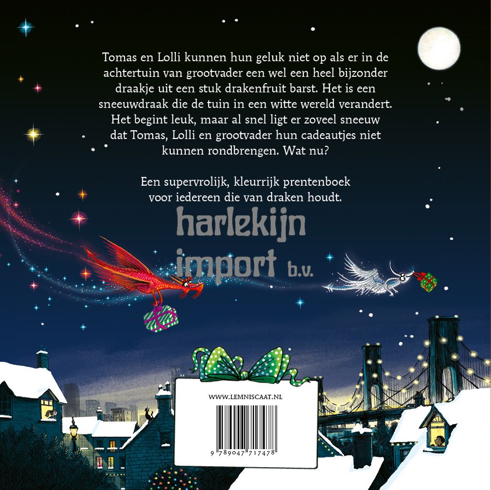 <p>Het is bijna Kerstmis als er in de achtertuin van grootvader een wel heel bijzonder draakje uit een stuk drakenfruit barst. Het is een sneeuwdraak die de tuin al snel in een witte wereld verandert.</p><p>Het begint leuk, maar al gauw ligt er zoveel sneeuw dat Tomas, Lolli en grootvader hun kerstcadeautjes niet kunnen rondbrengen. Wat nu?</p><p>Gelukkig komen de draken met een oplossing!</p><p>Een supervrolijk, kleurrijk drakenprentenboek dat sparkelt en tintelt en verrast als de draken zelf.</p>