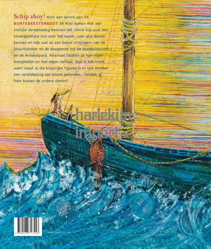 <p>Schip ahoy! Kies samen met een bonte verzameling beesten het ruime sop voor een onvergetelijke reis over het water. Leer alle dieren kennen en kijk wat ze aan boord uitspoken: van de Stuurhutstier en de Boegbever tot de Kombuiskreeft en de Ankeralpaca. Allemaal hebben ze hun eigen bezigheden en hun eigen verhaal. Saai is het nooit, want naast al die illustere figuren is er ook zomaar een verstekeling aan boord gekomen… Ontdek jij hem tussen alle beesten?</p><p><br /></p><p>De makers van <em>Het Bontebeestenhotel </em>hebben opnieuw de handen ineengeslagen voor <em>De Bontebeestenboot</em>. De spetterende teksten van Stefan Wolters met kleurrijke illustraties van Yvon van Oel vormen een geheel waar het plezier van afspat. Een avontuur om nooit te vergeten!</p>