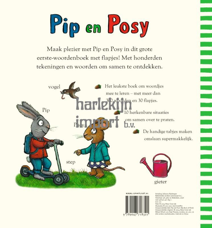 Het grote, onmisbare peuterwoordenboek! In dit groot formaat kartonboek met flapjes staan meer dan driehonderd woorden om te ontdekken. (Groot)ouders en kinderen zullen niet uitgekeken en uitgepraat raken bij de tien grote prenten en honderden afbeeldingen.Elke pagina heeft een tab, waardoor peuterhandjes ze makkelijk kunnen omslaan en de dikke bladzijden zorgen ervoor dat het boek jaren mee kan!Pip en Posy helpen jouw peuter honderden dagelijkse voorwerpen te benoemen.