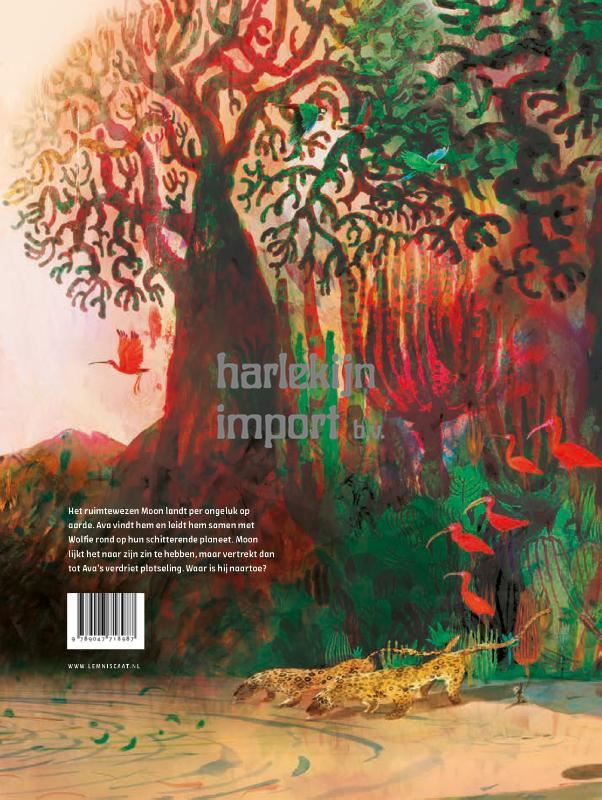 In een woordeloos verhaal dat de kracht en schoonheid van Eiland evenaart, vertelt Mark Janssen het verhaal van Moon – een ruimtewezen dat de aarde bezoekt. Een meisje dat hem ziet landen, leidt hem rond door haar thuis: de aarde. Mark Janssen laat de aarde schitteren in kleur en vorm, beweging en avontuur. Het is dan ook niet zo vreemd dat Moon, nadat hij weer vertrokken is naar zijn eigen planeet… terugkeert. Met zijn beste vriend. Om te blijven. De werelden van Mark Janssen wil je betreden en nooit meer verlaten, zoveel valt er te zien, te verbazen en te verwonderen. Thuis geeft je precies dat gevoel. Thuis. Voor altijd.