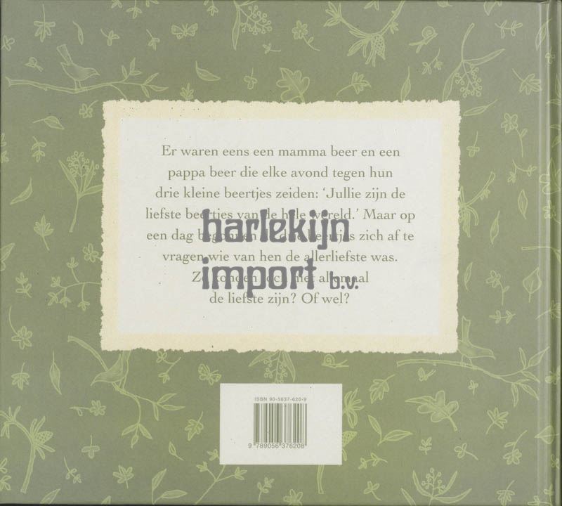 Er waren eens een mamma beer en een pappa beer die elke avond tegen hun drie kleine beertjes zeiden: ´Jullie zijn de liefste beertjes van de hele wereld.´ Maar op een dag begonnen de drie beertjes zich af te vragen wie van hen de allerliefste was. Ze konden toch niet allemaal de liefste zijn? Of wel?