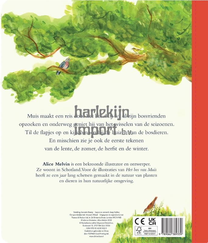 Muis maakt een reis door het bos. Hij wil al zijn bosvrienden opzoeken en onderweg geniet hij van het wisselen van de seizoenen. Til de flapjes op en kijk binnen bij de huizen van de bosdieren. En misschien zie je ook de eerste tekenen van de lente, de zomer, de herfst en de winter.