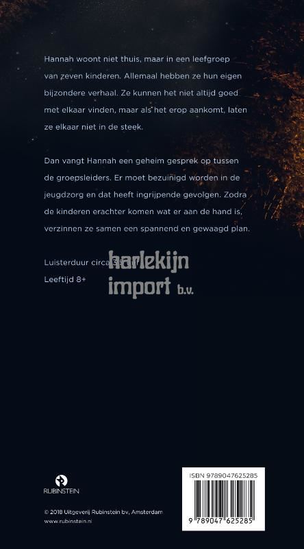 Hannah woont niet thuis, maar in een leefgroep van zeven kinderen. Allemaal hebben ze hun eigen bijzondere verhaal. Ze kunnen het niet altijd goed met elkaar vinden, maar als het erop aankomt, laten ze elkaar niet in de steek. Dan vangt Hannah een geheim gesprek op tussen de groepsleiders. Er moet bezuinigd worden in de jeugdzorg en dat heeft ingrijpende gevolgen. Zodra de kinderen erachter komen wat er aan de hand is, verzinnen ze samen een spannend en gewaagd plan.