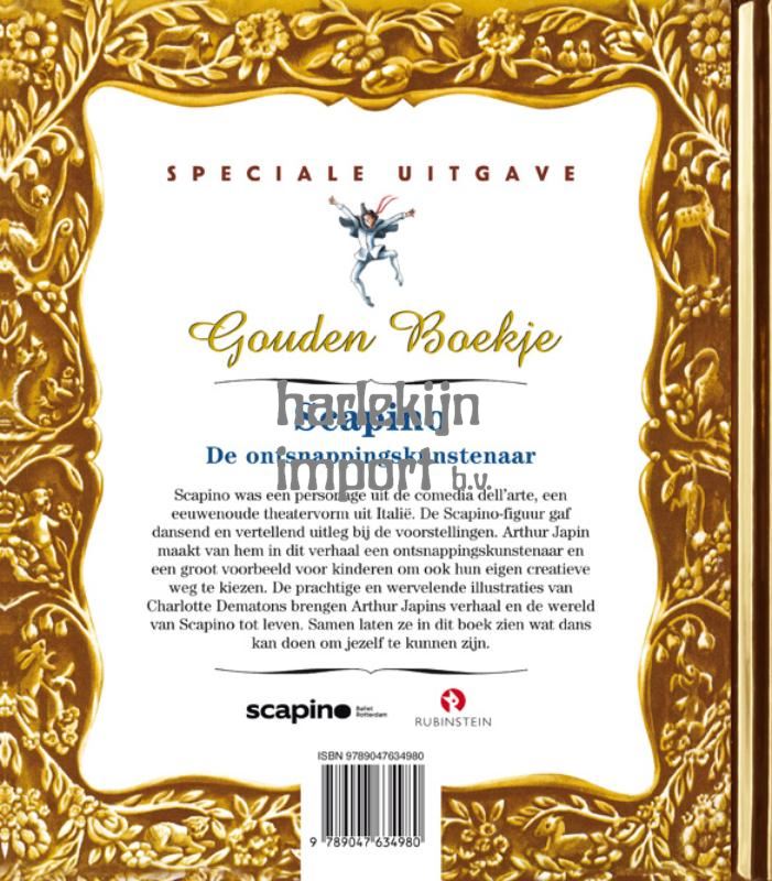 Dertig jaar lang bepaalde Ed Wubbe de koers van het beroemde Scapino ballet. Zijn afscheid wordt gevierd met een exclusief Gouden Boekje. Wie beter dan Arthur Japin en Charlotte Dematons, beiden grote dansliefhebbers, kunnen dit verhaal schrijven en verbeelden? Scapino was een personage uit de Italiaanse commedia dell’arte. De Scapino-figuur gaf daarin dansend, mimespelend en vertellend toelichting op de voorstellingen. Arthur Japin maakt van hem in dit verhaal een ontsnappingskunstenaar en een groot voorbeeld voor kinderen om ook hun eigen creatieve weg te kiezen. Hij laat zien wat dans kan doen om jezelf te kunnen zijn.
