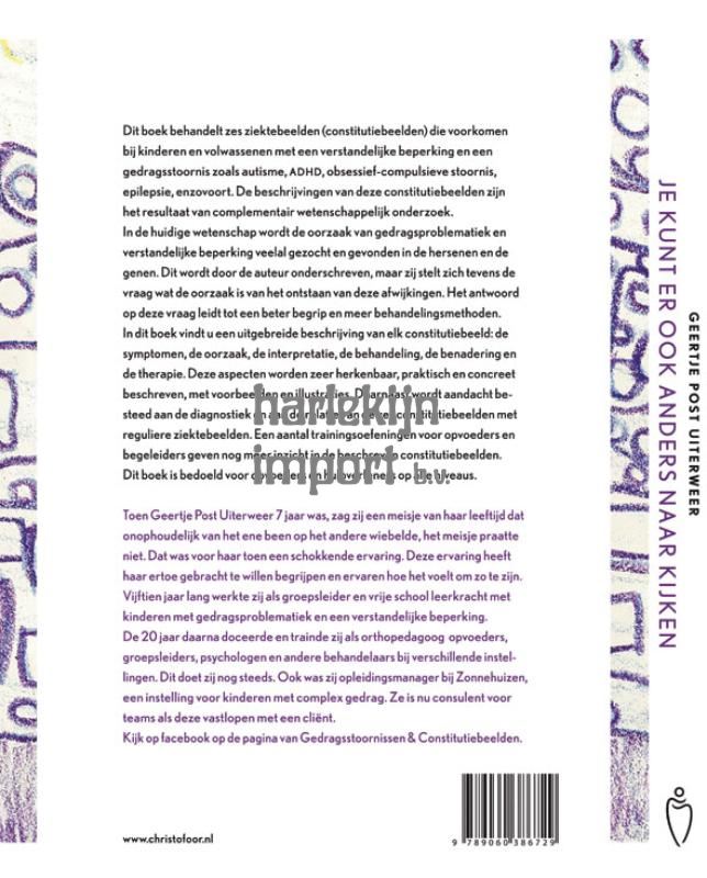 Dit boek behandelt zes ziektebeelden (constitutiebeelden) die voorkomen bij kinderen en volwassenen met een verstandelijke beperking en een gedragsstoornis zoals autisme, adhd, obsessief-compulsieve stoornis, epilepsie, enzovoort. De beschrijvingen van deze constitutiebeelden zijn het resultaat van complementair wetenschappelijk onderzoek. In de huidige wetenschap wordt de oorzaak van gedragsproblematiek en verstandelijke beperking veelal gezocht en gevonden in de hersenen en de genen. Dit wordt door de auteur onderschreven, maar zij stelt zich tevens de vraag wat de oorzaak is van het ontstaan van deze afwijkingen. Het antwoord op deze vraag leidt tot een beter begrip en meer behandelingsmethoden. In dit boek vindt u een uitgebreide beschrijving van elk constitutiebeeld: de symptomen, de oorzaak, de interpretatie, de behandeling, de benadering en de therapie. Deze aspecten worden zeer herkenbaar, praktisch en concreet beschreven, met voorbeelden en illustraties. Daarnaast wordt aandacht besteed aan de diagnostiek en aan de relatie van de zes constitutiebeelden met reguliere ziektebeelden. Een aantal trainingsoefeningen voor opvoeders en begeleiders geven nog meer inzicht in de beschreven constitutiebeelden. Dit boek is bedoeld voor opvoeders en hulpverleners op alle niveaus.
