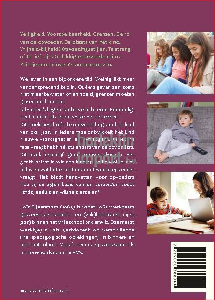 Dit boek beschrijft de ontwikkeling van het kind van 0-21 jaar. In iedere fase ontwikkelt het kind nieuwe vaardigheden en vermogens. In iedere fase vraagt het kind iets anders van de opvoeders. Als opvoeders in staat zijn liefdevolle begrenzing te geven dan is dat een basis voor een gezonde ontwikkeling, zowel voor het kind, de ouder en andere relaties waar zij mee te maken hebben.