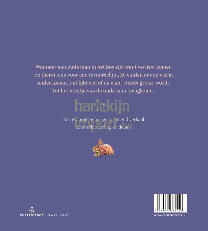 Wanneer een oude man in het bos zijn want verliest komen een voor een de dieren te voorschijn. Ze vinden er een warm onderkomen. Het lijkt wel of de want steeds groter wordt. Tot het hondje van de oude man terugkomt….