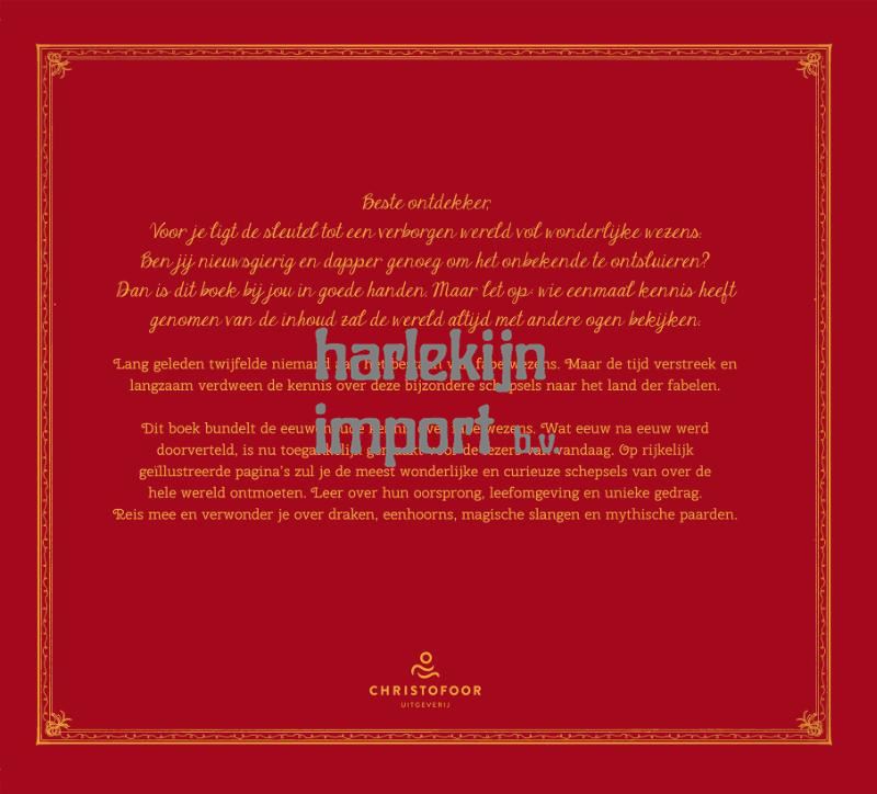 Dit boek bundelt de eeuwenoude kennis over fabelwezens. Wat eeuw na eeuw werd doorverteld, is nu toegankelijk gemaakt voor de lezers van vandaag. Op rijk geïllustreerde pagina’s zul je de meest wonderlijke en curieuze schepsels van over de hele wereld ontmoeten. Leer over hun oorsprong, leefomgeving en unieke gedrag. Reis mee en verwonder je over draken, eenhoorns, magische slangen en mythische paarden.