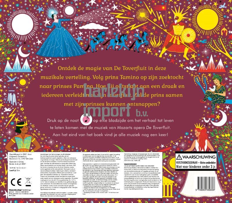 Laat je betoveren door Mozarts Die Zauberflöte. Volg prins Tamino op zijn zoektocht naar prinses Pamina. Kijk hoe hij ontsnapt aan een draak, ontkomt aan gevangenschap en iedereen verleidt met zijn toverfluit. Zal de prins samen met zijn prinses kunnen ontsnappen? De prachtige tekeningen van onder andere paleizen, prinsessen en draken komen extra tot leven als je op de muzieknoten in het boek drukt: je hoort fragmenten uit de opera! Aan het eind van het boek vind je uitleg over het muziekstuk met leuke weetjes over klassieke muziek.