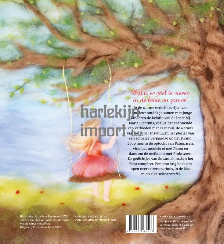 Wat gebeurt er veel in een jaar! De natuur verandert voortdurend en ondertussen groeien de kleine kinderen op in een alsmaar voortrollende cyclus van de seizoenen en de jaarfeesten. In dit eerste deel van Wij vieren feest begint het voorjaar heel voorzichtig tevoorschijn te komen na een koude winter, en loopt tot het midzomerfeest van Sint-Jan. Bladzijde voor bladzijde geeft het de gang door het jaar gedetailleerd en liefdevol weer. Wij vieren feest! is een uniek kinderboek gemaakt met illustraties van wol. De magische gedichtjes spreken tot de verbeelding en nodigen uit om je onder te dompelen in de sfeer van ieder jaarfeest.