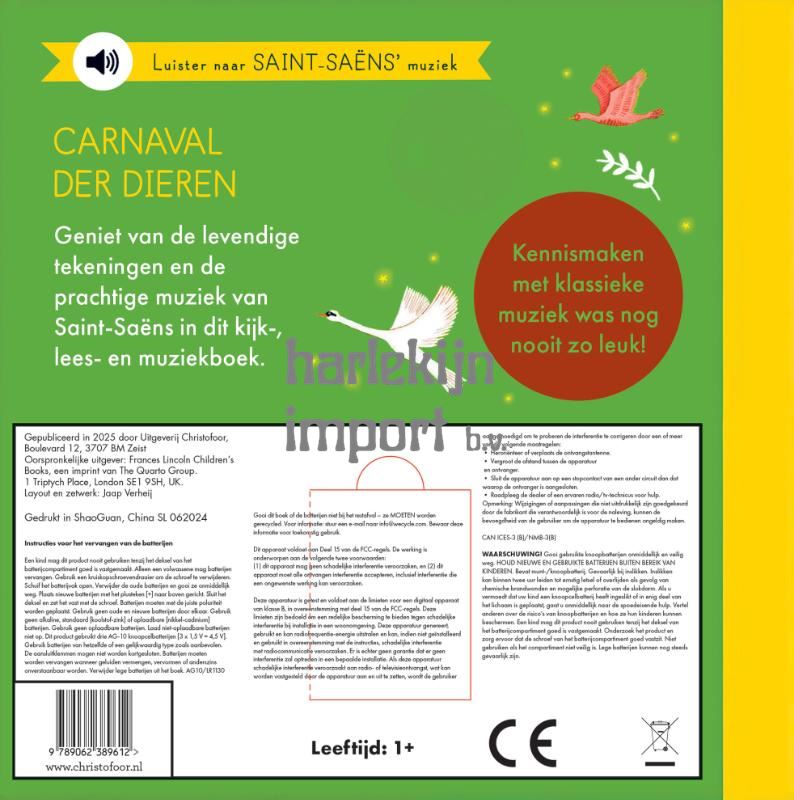 Stevig muziekboekje met kleurrijke illustraties. Druk op de knopjes en luister naar de prachtige muziek van Camille Saint-Saƫns. Kennismaken met klassieke muziek was nog nooit zo leuk!