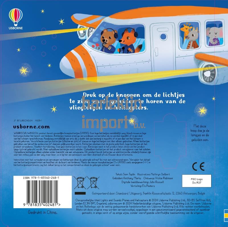 Van een ouderwets vliegtuig dat opstijgt tot een helikopter die over een klif scheert: in dit boekje vind je allerlei spannende vliegende machines… en als je op de knop op de bladzijde drukt, hoor je ze en gaan de lichtjes aan. De grappige dierenpiloten laten een watervliegtuig veilig landen, sturen een groot straalvliegtuig door de wolken en een stuntvliegteam laat een spectaculaire show zien.Â
