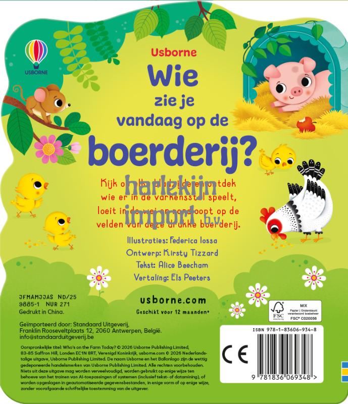 Wie zie je vandaag op de boerderij? Kartonboek. 1+ |