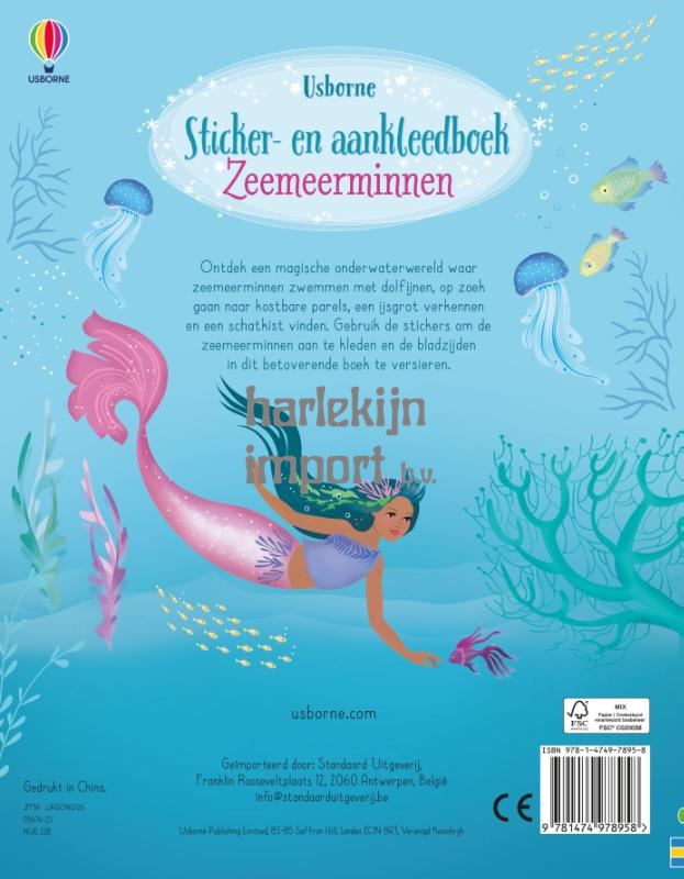 Ontdek een magische onderwaterwereld waar zeemeerminnen zwemmen met dolfijnen, op zoek gaan naar kostbare parels, een ijsgrot verkennen en een schatkist vinden. Gebruik de stickers om de zeemeerminnen aan te kleden en de bladzijden in dit betoverende boek te versieren.